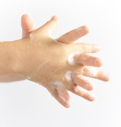 赤ちゃんがノロウイルスにかかっているときは家族にも感染する可能性があります。ノロウイルスはかなり感染力が強いので、あっという間に家族全員に広まってしまうということも少なくありません。下痢の処理をしたら必ず一つ一つビニール袋に包み、ウイルスが外に出ないように密閉します。出来るだけ手袋やマスクなどをすると良いのですが、毎回するのは大変ということもあると思います。そんなときはおむつの処理をする都度しっかりと手に付けて石鹸で1分以上もみ洗いをし、流水で30秒ほどかけて洗い流します。